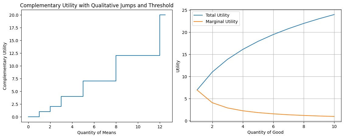 The law of “utility” is one of complementarity. Utility with each added unit can remain flat (e.g., the second bag of rice in the kitchen is valued as much as the first), rise in qualitative jumps (e.g., three logs can be used for a fire to keep one warm and 100 logs can be used to build a cabin), or hit thresholds. Utility may also rise incrementally, but this is largely unimportant. There is no law of marginal ordering. Means can sustain, expand, or transform ends.